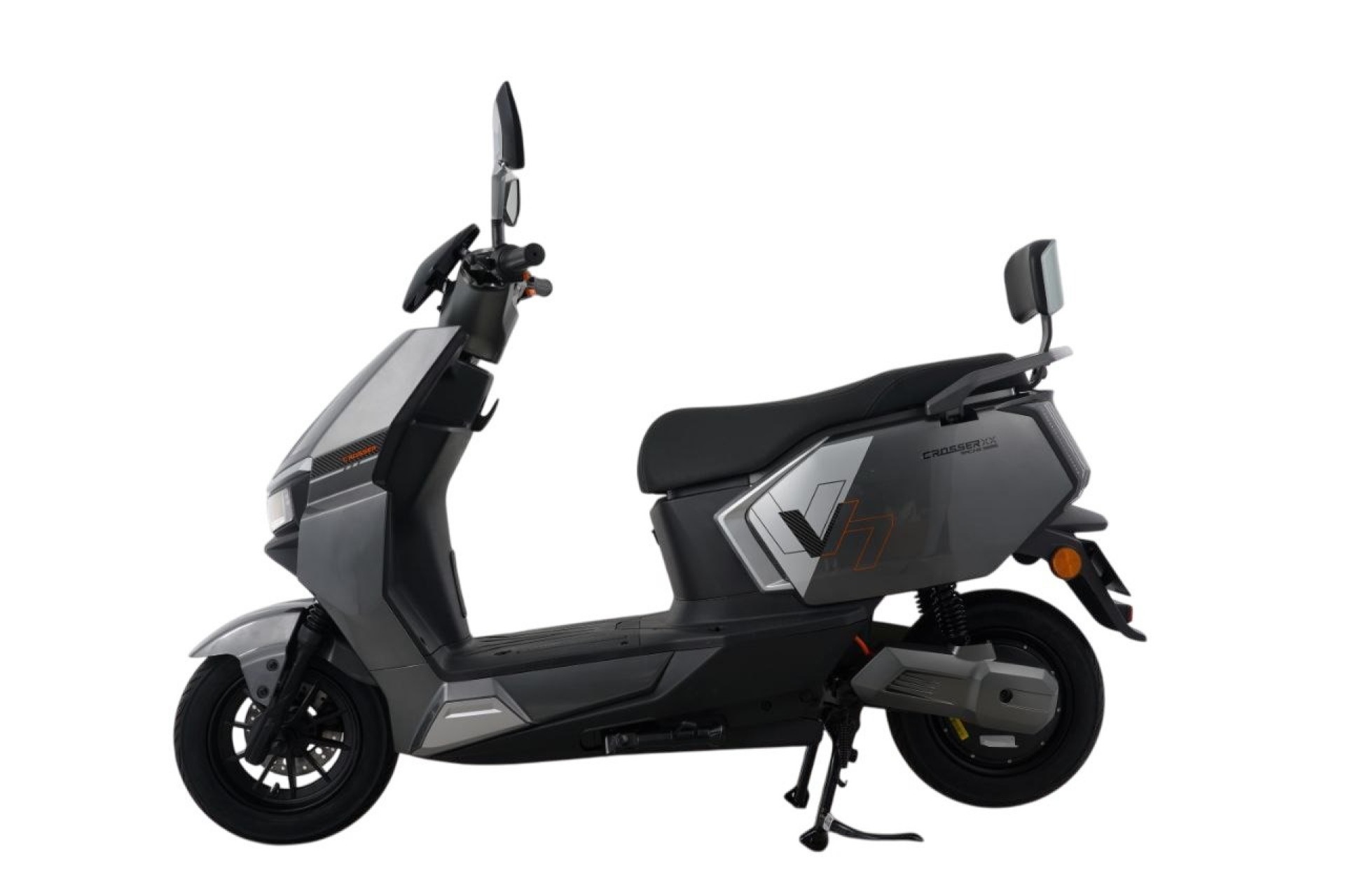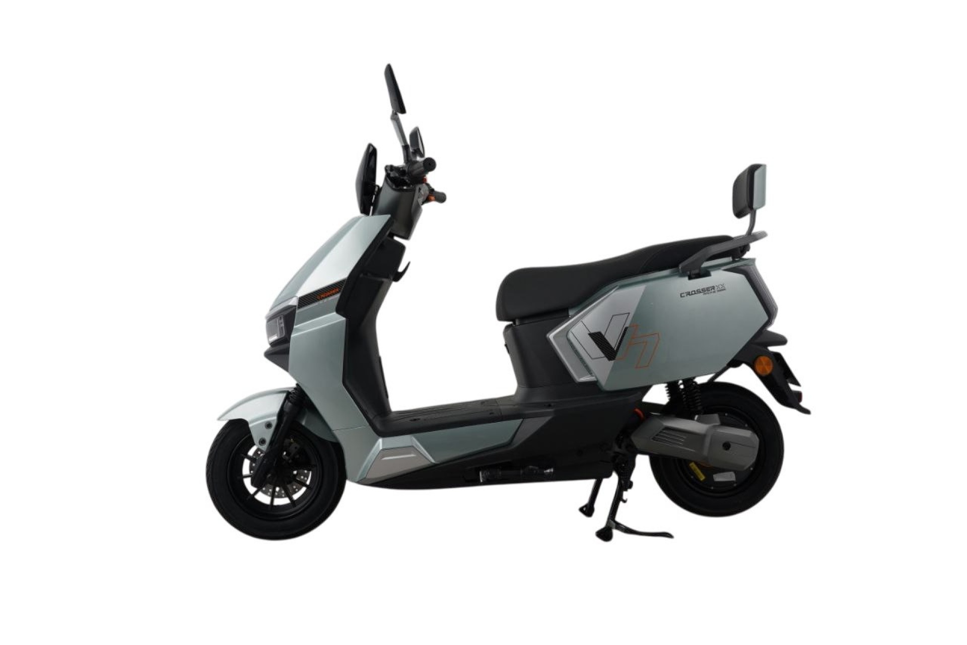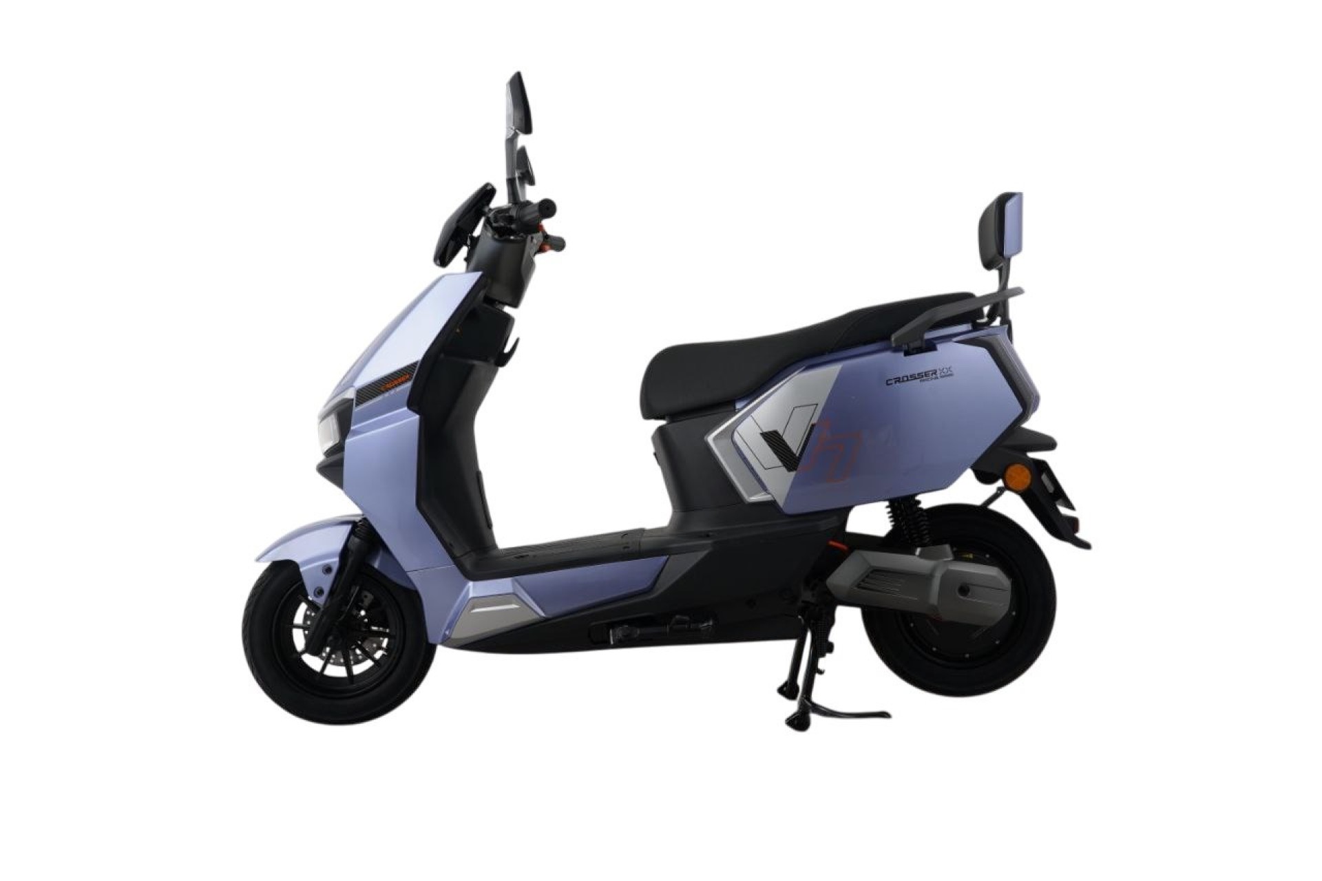 Безопасность движения обеспечена комбинированной тормозной системой: спереди установлен эффективный дисковый тормоз тормоз. Комфорт и сцепление с дорогой гарантируют бескамерные шины 3,0–10 дюймов. Для удобства пассажира предусмотрена спинка сзади. Скутер доступен в цветах: серый, фиолетовый, зеленый.